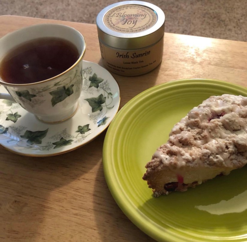 I loooove Blooming With Joy teas. I get them at Elderberry Place in O’Fallon, MO. There are open jars of all the types, so you can sniff to your heart’s content. They also make gift sets with spoons, sugar cubes, tea cups, etc.