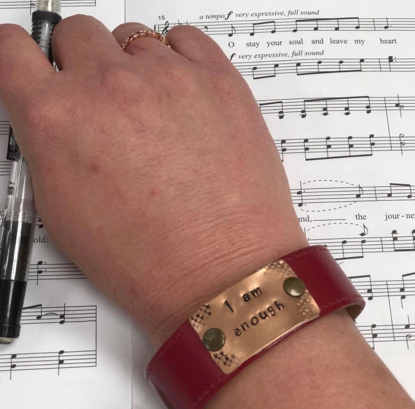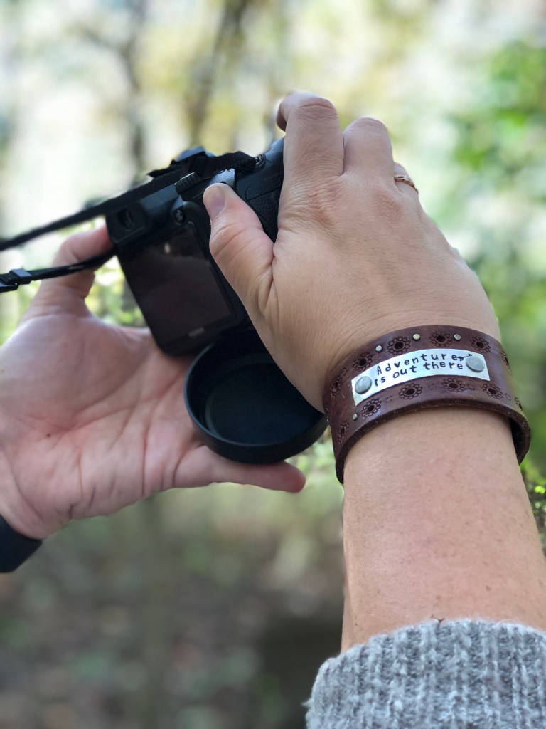 While shopping at Joy’s Collective Market on St. Charles Main Street a couple of years ago, I stumbled across a custom jewelry brand called Cuffs That Inspire. This artist’s work stamps familiar mantras and custom quotes onto metal, then places them on gorgeous upcycled pieces of leather to create cuff bracelets. I immediately fell in love and purchased a cuff with a quote about Wanderlust that I knew would add a nice pop to my fall outfits. It would be the first of many items I would buy from the brand.