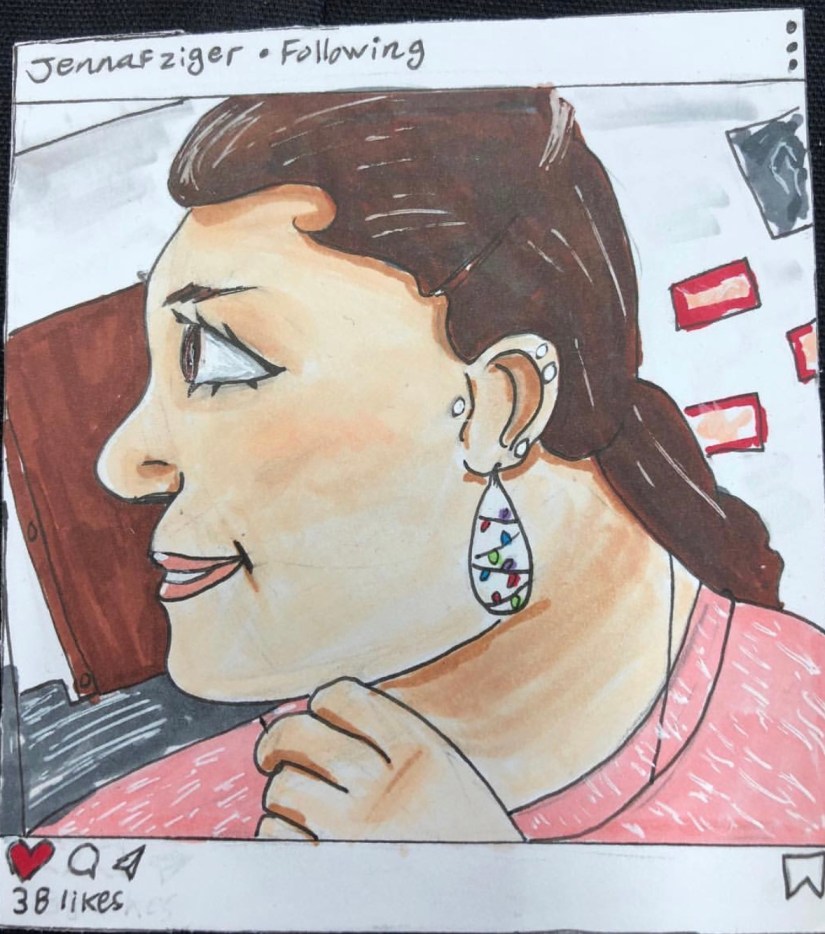 (I love that one of my students was so inspired by my look with a pair of earrings that she created a piece of custom art and gave it to me as a gift. Go follow her on Instagram at Sherbets_Art_Stop. She is quite talented!)