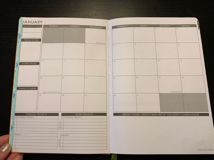 I love that the planner is book bound, so it tends to hold up well during the year. It’s available in three sizes. I use the medium (Pro) which is around 7″X 9″. This provides enough space to write, while remaining small enough to fit in most of my bags or totes.