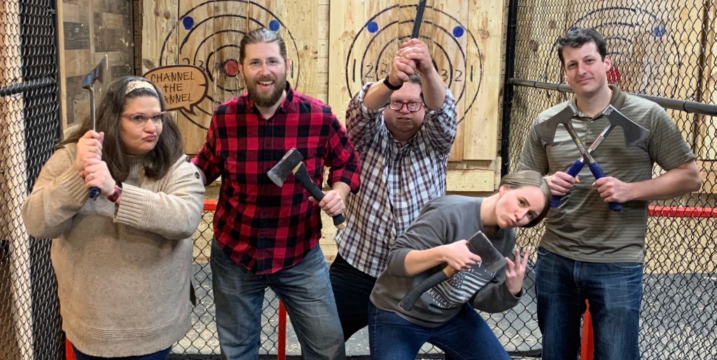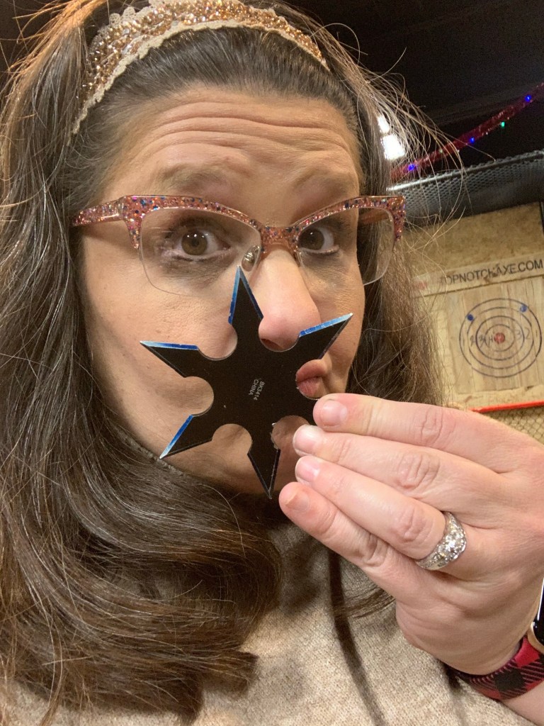 The latest trend in group activities is… axe throwing? Yep… gather your friends and throw sharp objects at targets for fun, while drinking alcohol. Sounds great, right? While it seemed a bit stupid and dangerous to me, that’s what my lovely husband, Jeff, wanted to do to celebrate his 43rd birthday. So… I agreed to try it, though I am one of the most hopelessly uncoordinated people I know.