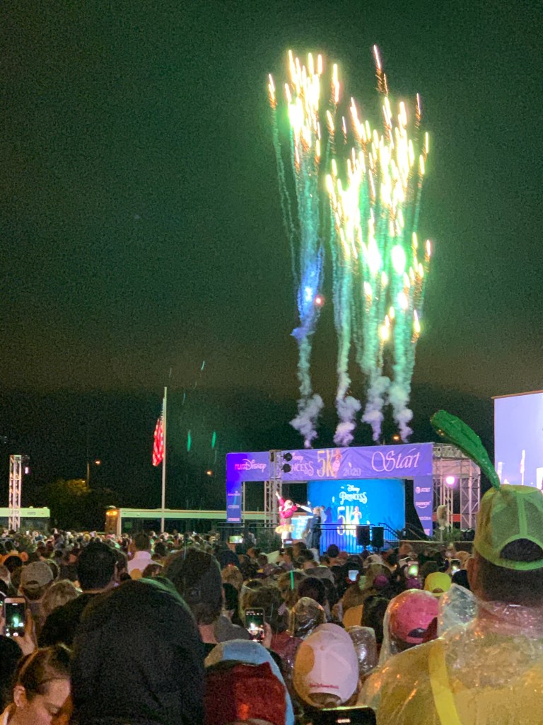 Around 4:30 AM, we were directed to get into our race corrals and get ready. They had a DJ playing music and Cast Members hyping up the crowd. There were high-definition screens showing scenes from Princess movies and a new trailer for the live-action Mulan to keep the runners distracted too. Though we were freezing and ready to get moving, it was a whole lot of fun.