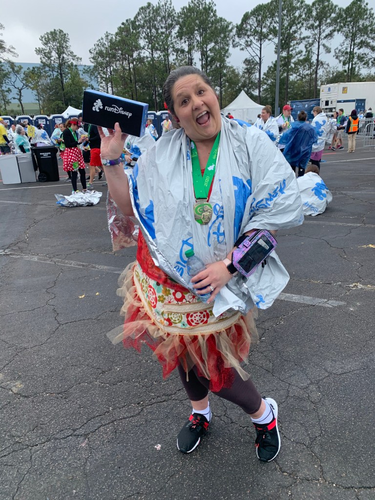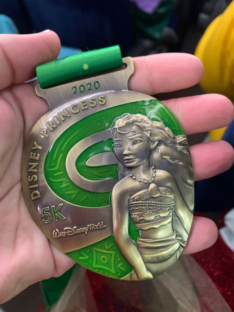 Post Race Party: After the race, we were handed a beautiful medal that features Moana and The Heart of Te Fiti. It is my favorite race medal I have ever earned. They gave us cute runDisney mylar heat blankets and led us to the snack area. Our snack boxes contained delicious post-race treats including chips and queso! Finally, we snapped cute pictures in the finisher area and then boarded a bus back to the hotel for showers.