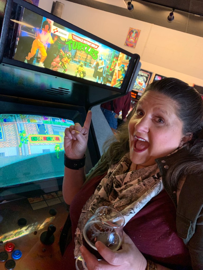 Armed with a roll of quarters, we sipped a chocolate orange stout and a red IPA while playing some of our old favorite games. (I am sadly quite rusty at the Teenage Mutant Ninja Turtles game!) Two Plumbers is a great place to hang out with a group of friends or have a fun retro date night. Though they don’t have a lot of food to offer, you can bring in your own food from the local restaurants in the area, or order a St. Louis style pizza from their kitchen.