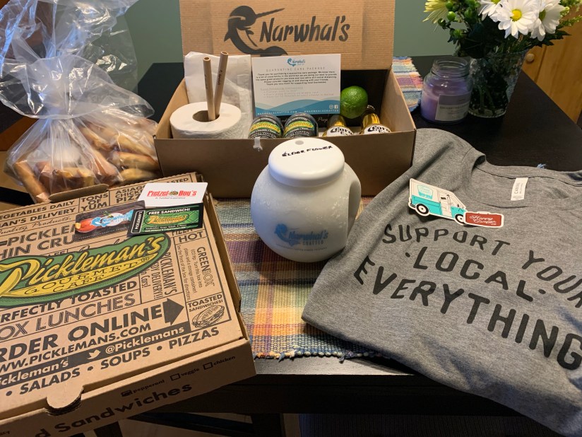 In the care package, we had the choice of any of Narwhal’s frozen cocktails from the menu. We ordered the Elderflower Gin Fizz. This 40 oz gem lasted us all the way through dinner and then some!