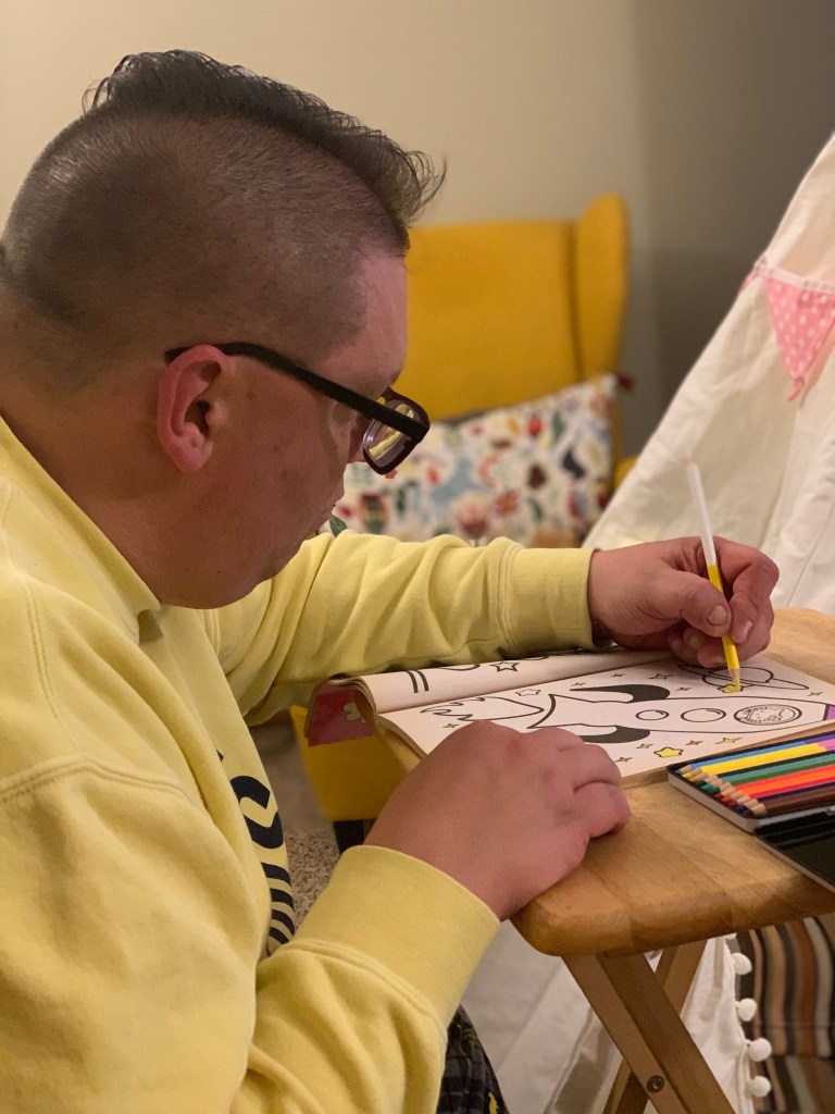 After dinner, we busted out the coloring books and the record player. We explored our creativity while listening to vintage Big Band records.