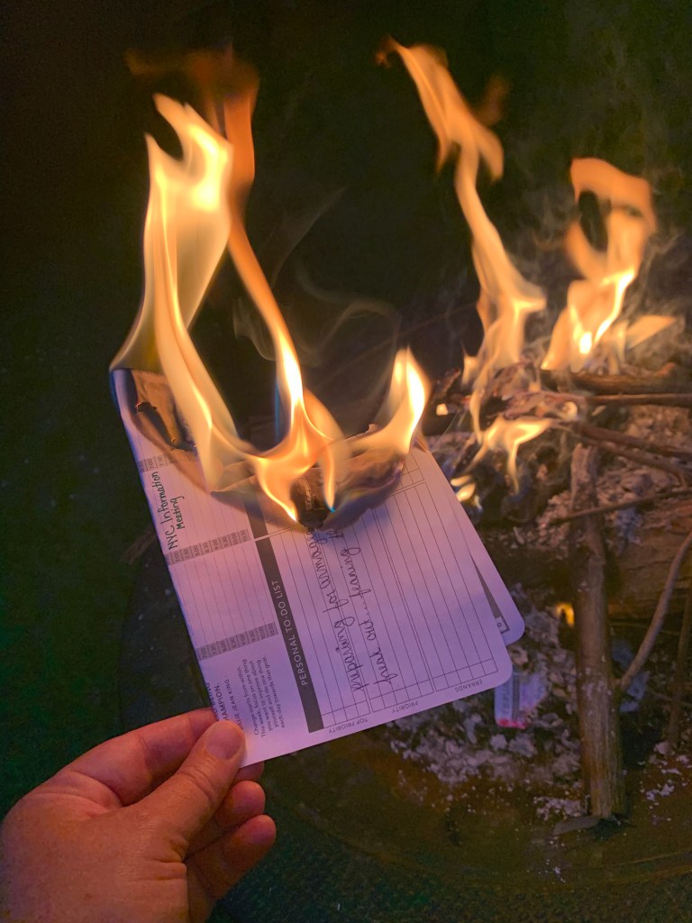 And so, on July 4, while neighbors were blowing stuff up and sending sparkling fireworks into the sky, I burned down the year in my back yard, page by page. Yeah, it’s probably a little dramatic… but I have a flair for the dramatic. One by one, I watched each plan catch fire, curl, and char until they were gone for good. Every trip. Every celebration. Every task. Just gone without a trace.