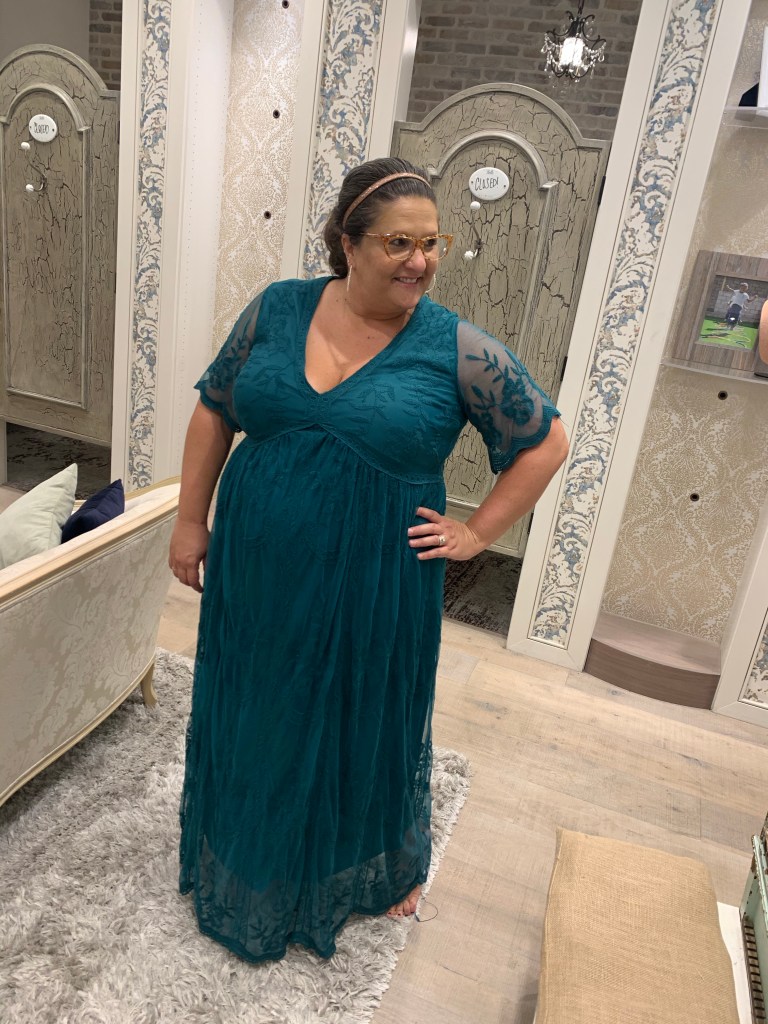 While the trip was mostly about making my friend feel beautiful, I did find a lot that I loved too. I really like the soft femininity of this gauzy white top paired with skinny jeans and flats. How awesome is it that the store now carries wide width shoes? These pumpkin spice colored flats are amazing! And can we talk about the color of the Marionette Maxi Dress? It’s just breathtaking!