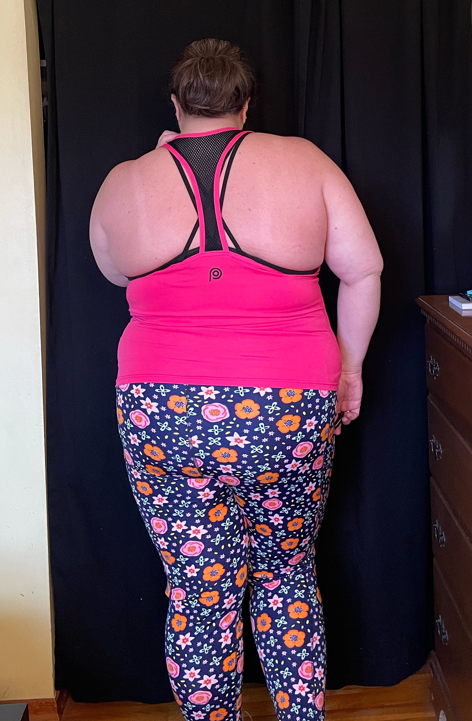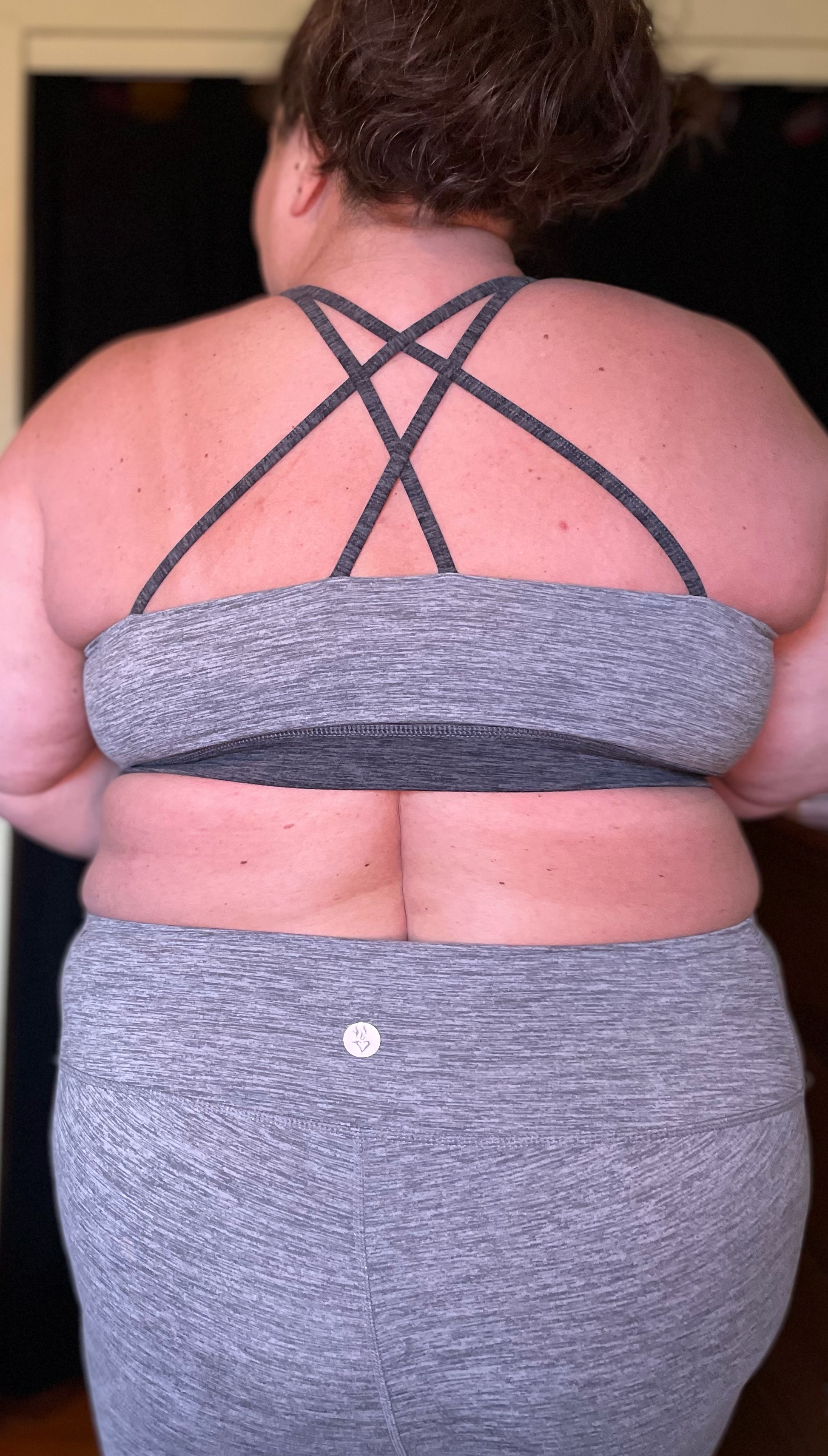 - Bra- I decided to get the Yara Bra because the of the strappy back design. This was an absolute NO WAY. It is so deeply cut on the sides that I was afraid my boobs were falling out. The back just crept into my fat folds and disappeared. Even for just wearing a day at school I felt completely unsupported. I can’t imagine doing an activity with any sort of impact! I love POP Fit’s brand mission and the representation they use in their media. I just think they have a long way to go before I would purchase a top from them again.