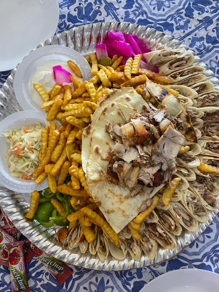 We enjoyed hummus in a million different ways, warm bread baked in a brick oven, and squeaky halloumi cheese. We got chicken shawarma (twice) from the restaurant down the street from my brother’s house. It was incredible… spiced, roasted chicken and garlic sauce in flatbread… perfection. We enjoyed Mansaf, the national dish of Jordan, at a friend’s home. It had tender lamb, rice, and the most delicious jameed. Our favorite meal was a variety of Syrian dishes, prepared by a friend, that were all bursting with flavor!