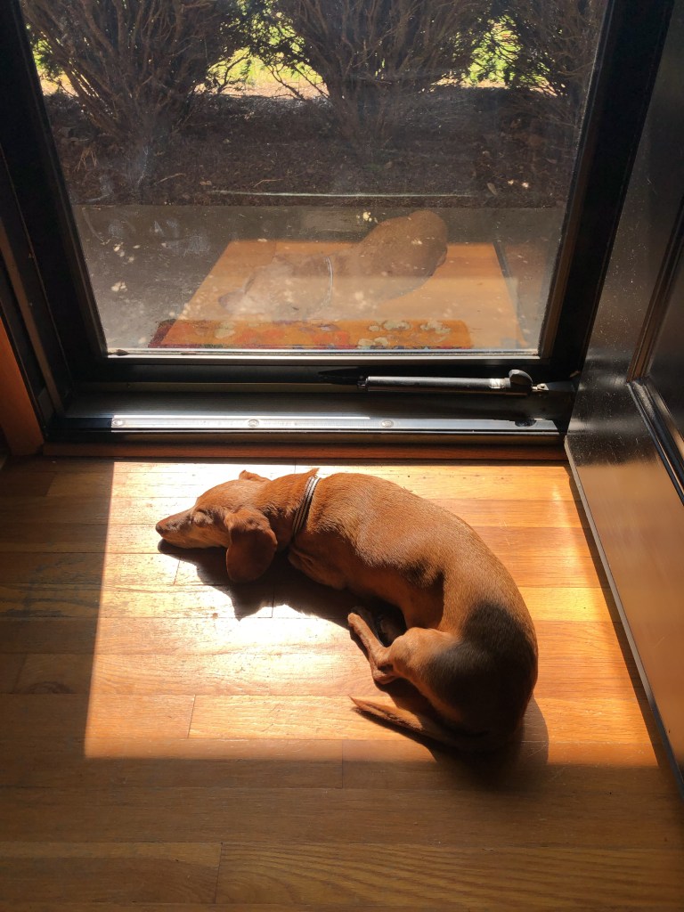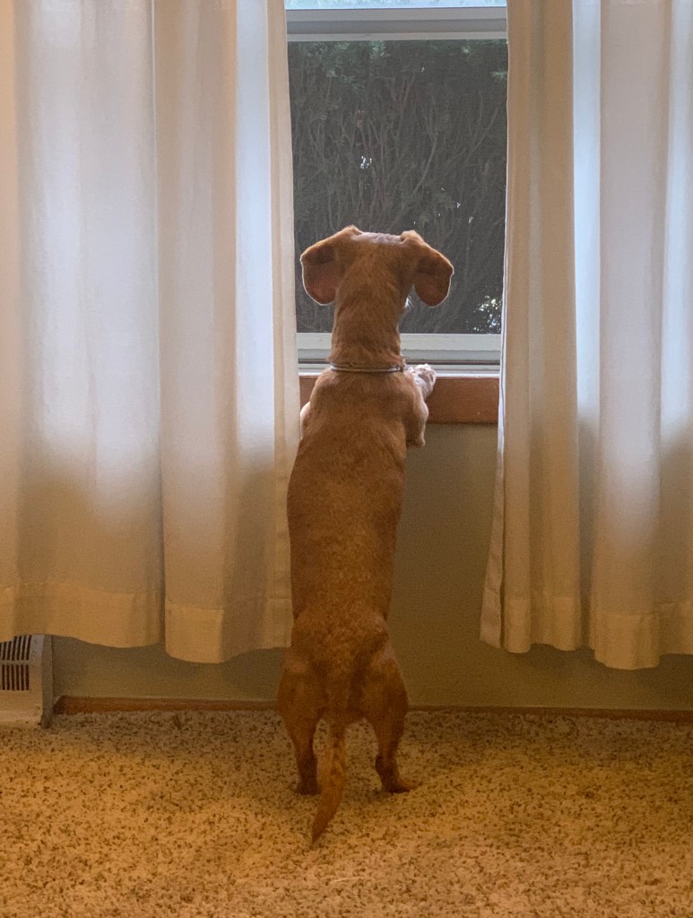 Scout enjoyed sleeping in sunbeams most of all. She was the master toy destroyer, pulling every inch of stuffing out of a new toy in less than ten minutes. She loved tennis balls and would pull all the fur off of them till they were bald and slimy… because she liked them that way. She loved to run back and forth during family corn hole games, chasing the bags till she collapsed with exhaustion. She enjoyed patrolling the yard, sniffing along the perimeter for hours. She loved playing in the snow, bounding through tall drifts and using her nose as a shovel.