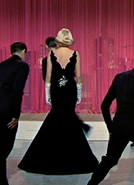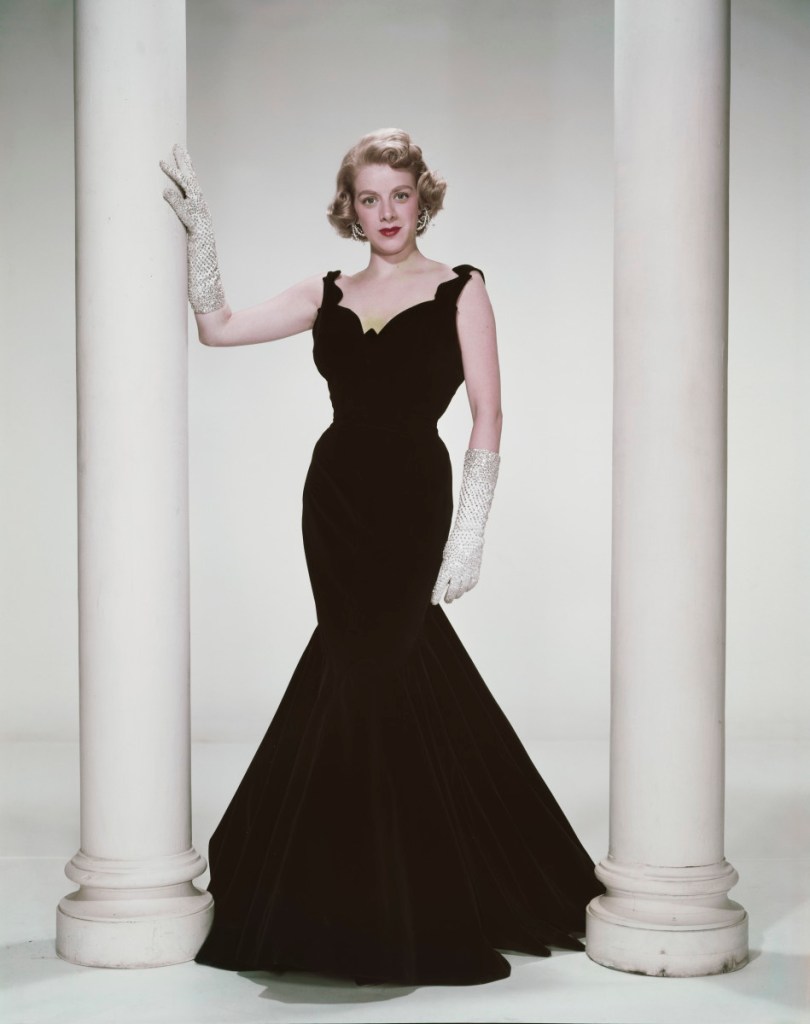 Rosemary Clooney in White Christmas: To be honest, I love most of Clooney’s clothes in this movie. But the dress she wears in the Carousel Club scene is amazing! This is truly a revenge dress. It’s suited so well to her hourglass shape, has a uniquely scalloped neckline, and a glorious rhinestone brooch on her backside.