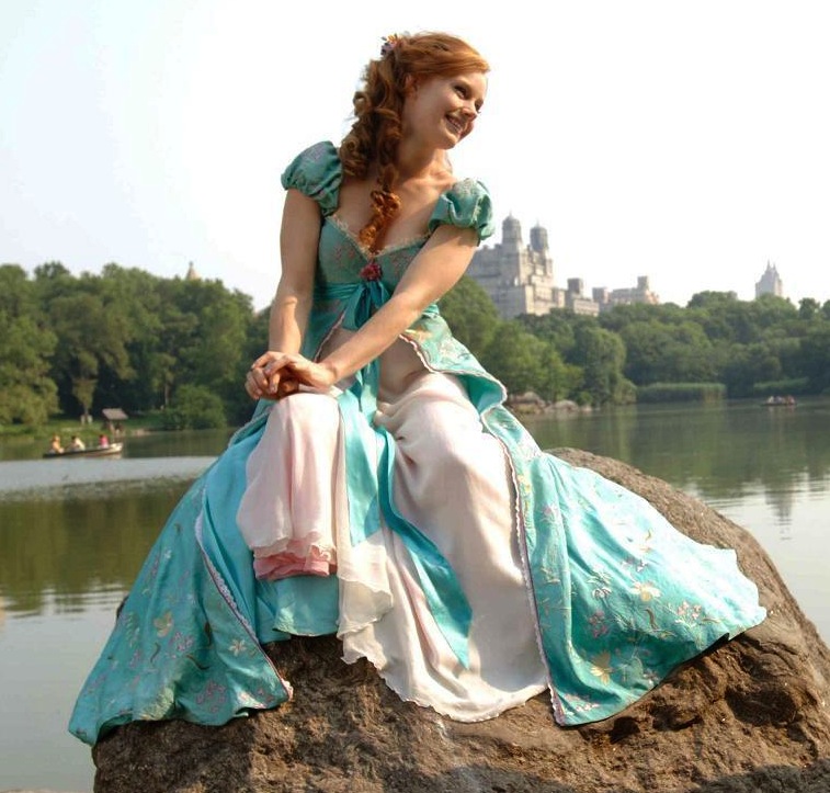 Amy Adams in Enchanted: This may not be the most famous dress cut from the household drapes, but it’s my favorite. I adore the princess cut and the pastel colors of this dress. The chiffon petticoat flows gorgeously when Giselle (Adams) dances and twirls through Central Park, while all of New York joins her. GOALS!