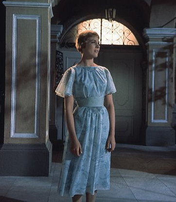 Julie Andrews in The Sound of Music: I know that not every dress that Maria (Andrews) wears in this movie is enviable, but there are two that I think are just perfect. The blue floral chiffon dress she wears in the gazebo scene is vintage, simple, and lovely. Her dirndl style dress from the ball is also wonderful. I love the embroidered flowers and mint buttoned bodice.