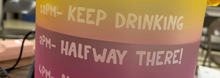Hydration.... yeah, I know it's important. Water does a body good, right? I mean, your body is chock full of water! It keeps your joints loose, prevents many ailments, cleanses your body of toxins, and gives your skin a healthy glow. Water makes you feel good, and it tastes pretty good too. Hooray, water! However,… Continue reading Adventures With A Ginormous Water Bottle